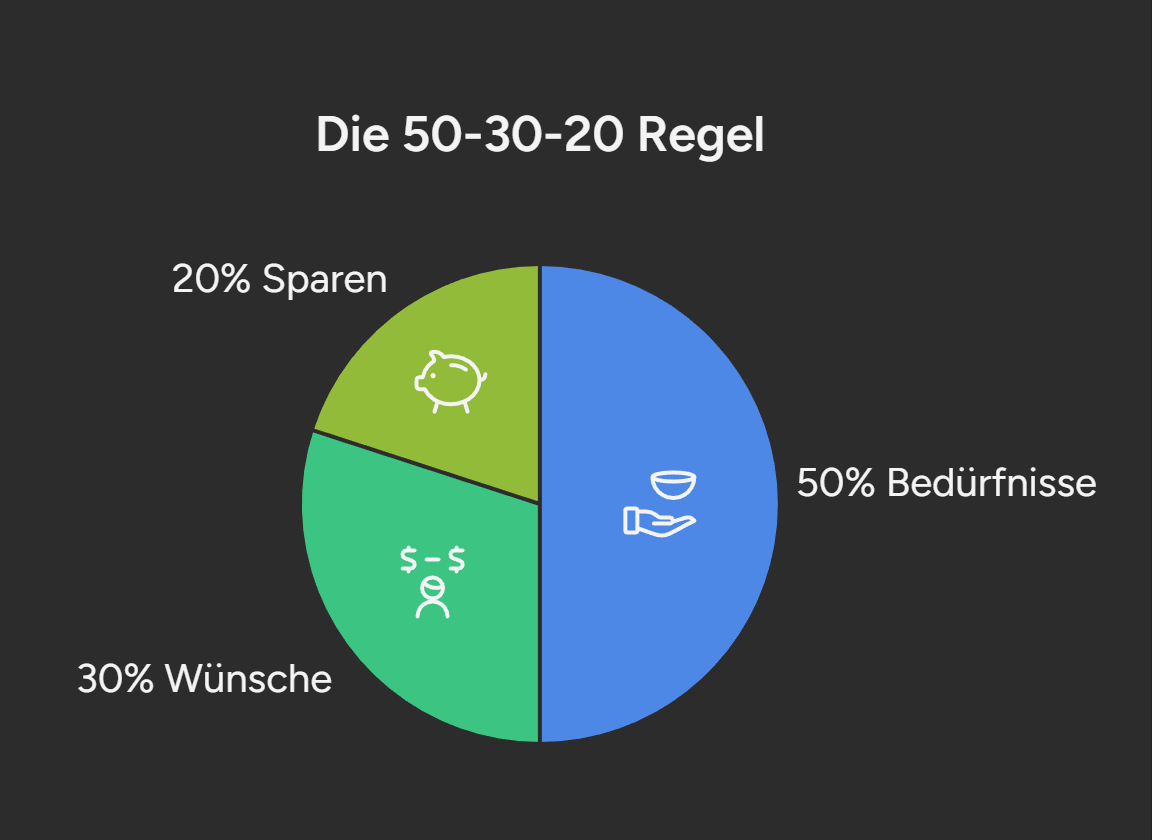• 30 % für Wünsche: Ausgehen, Hobbys, Urlaub (Leben im Hier und Jetzt ist wichtig!).