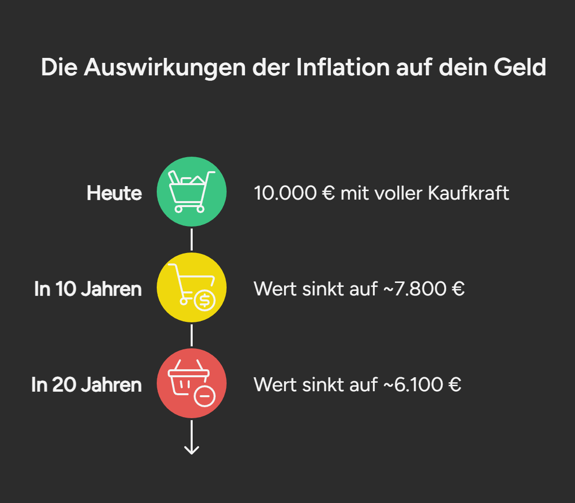 Wer sein Geld auf dem Girokonto lässt, akzeptiert einen garantierten Kaufkraftverlust. Nur Sachwerte (wie Aktien/ETFs) bieten langfristig Schutz.