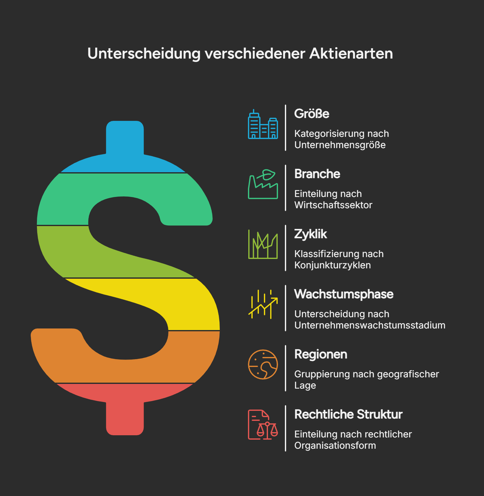 Dein umfassender Leitfaden zur Klassifizierung von Aktien nach Größe, Sektor, Zyklik, Faktoren und Struktur. Detailliert erklärt, wie unterschiedliche Aktientypen auf makroökonomische Szenarien wie Zinsanstieg, Rezession oder Inflation reagieren.